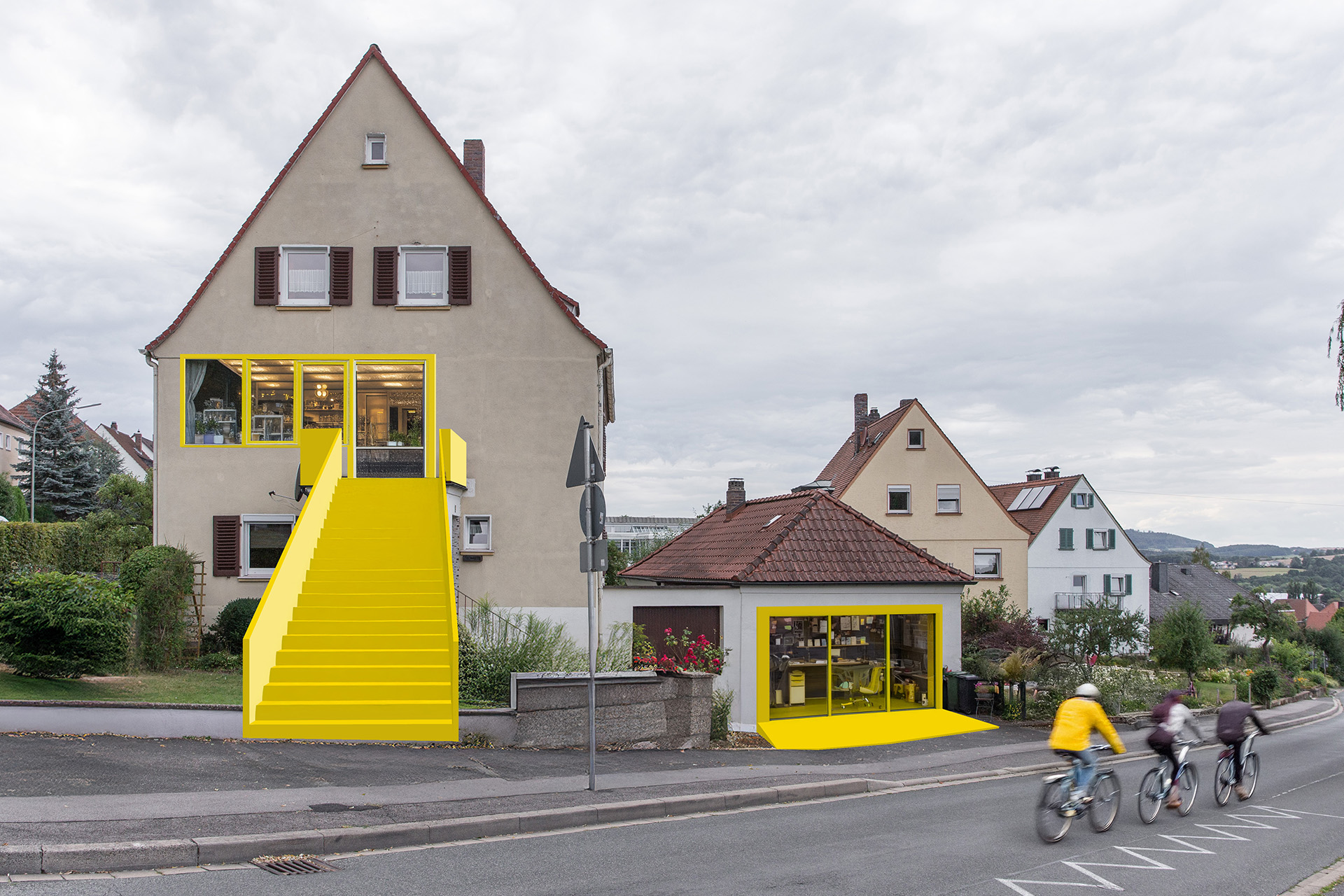 Single-family housing areas have a ton of hidden potential: unused spaces. Whether it's a single room, a guest apartment, a garage, or even a whole floor that's not being used anymore because the folks who live there can't climb stairs anymore—you can find a good use for every space, giving the neighborhood some fresh new features!